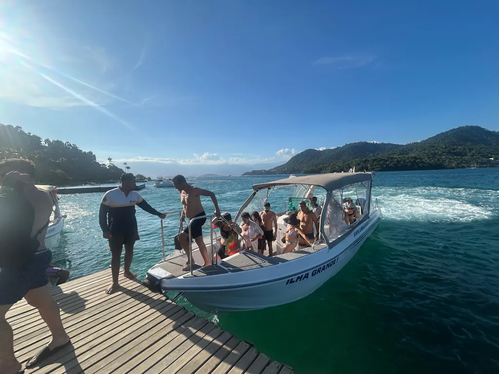 No dia do passeio compartilhado, a embarcação (lancha) será designada de acordo com o número de passageiros; não é possível escolher antecipadamente.